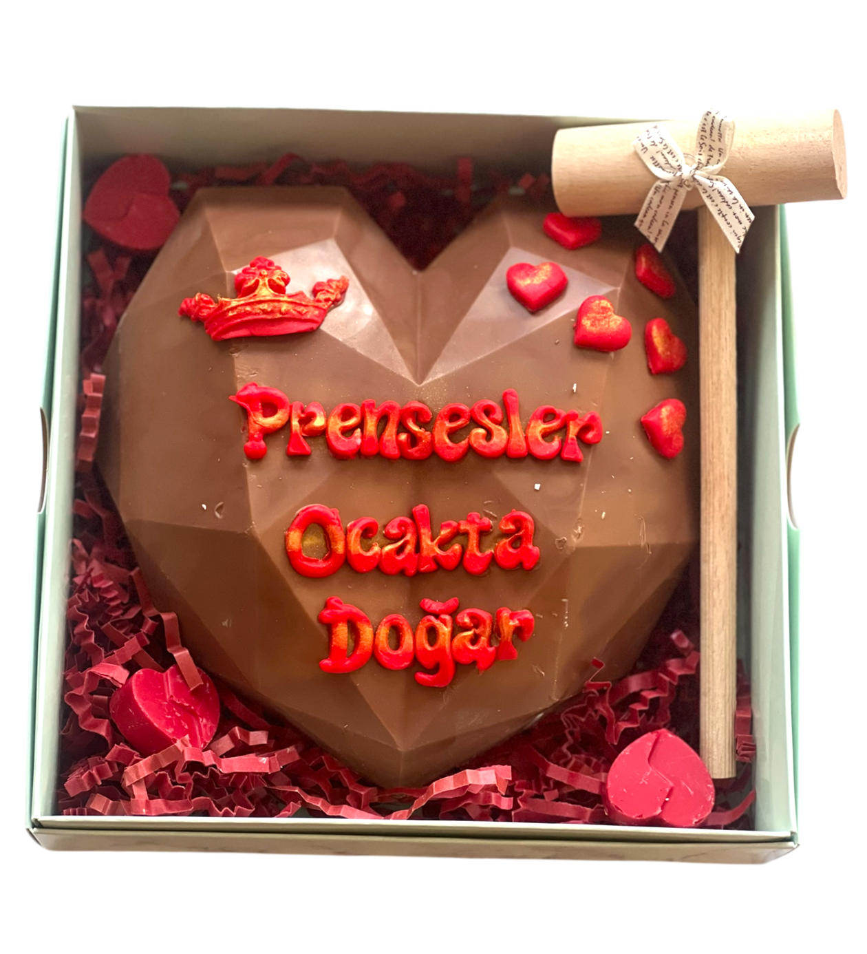 Kırıldığında içerisinden kalp çikolatalar ve notunuz çıkar.