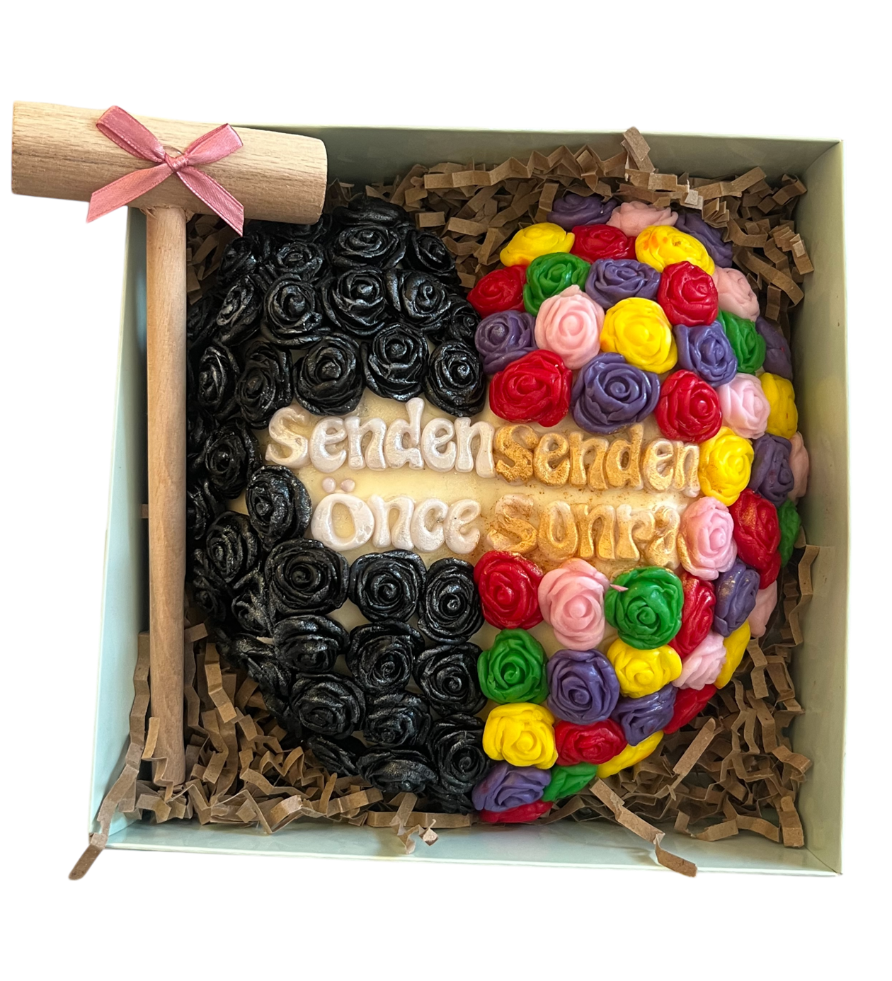 aşk dolu romantik Senden Önce Senden Sonra Tasarım Pinyata özel yazısı özel şeker hamuru gülleri ve işlemeleriyle sizin için hazırlanmaktadır.
